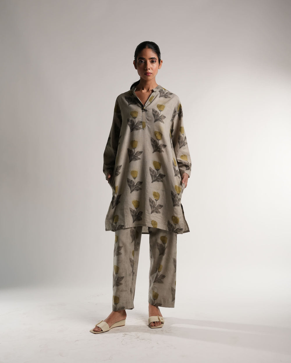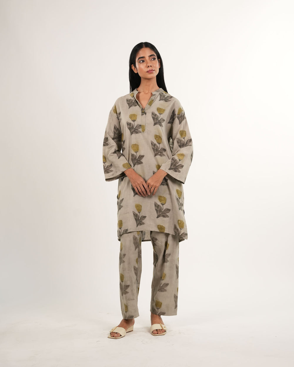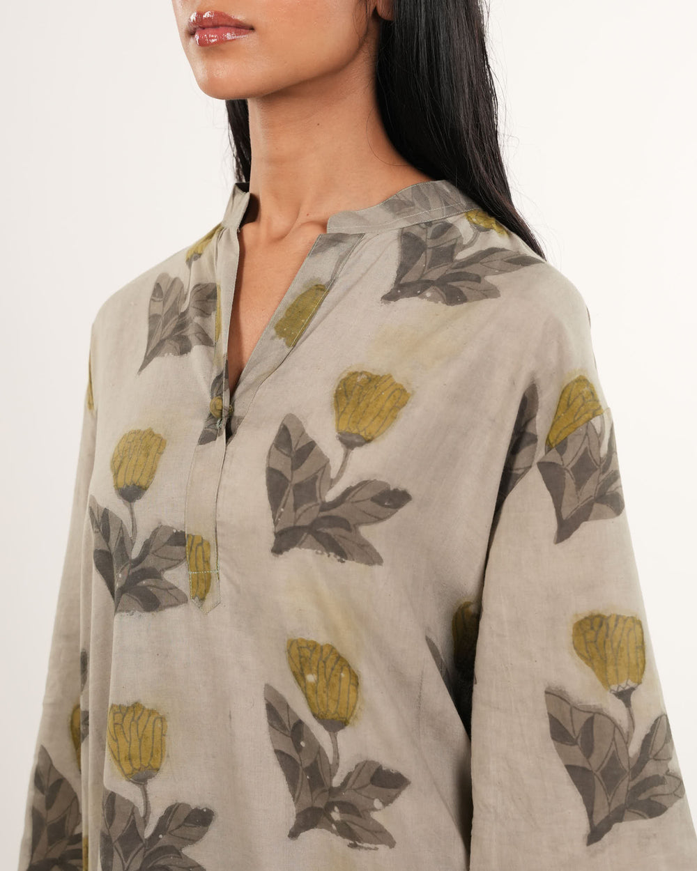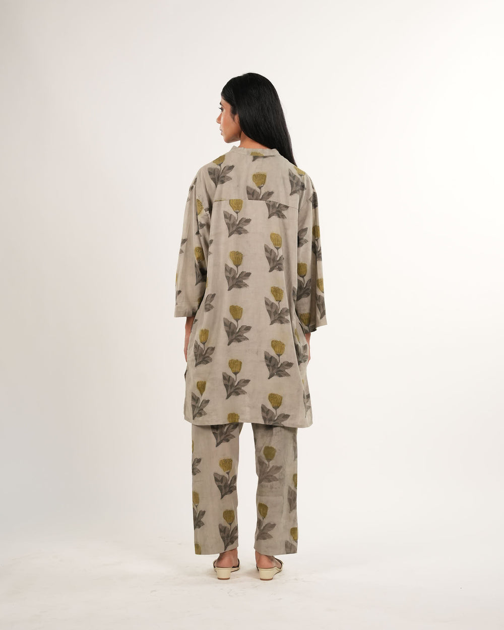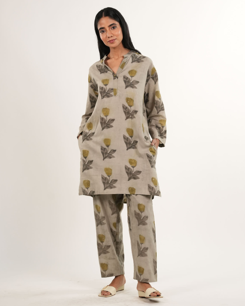 Handblock Printed Ajrakh Co-Ord Set in Beige | Organic Cotton | Neelmii, plant base dye
