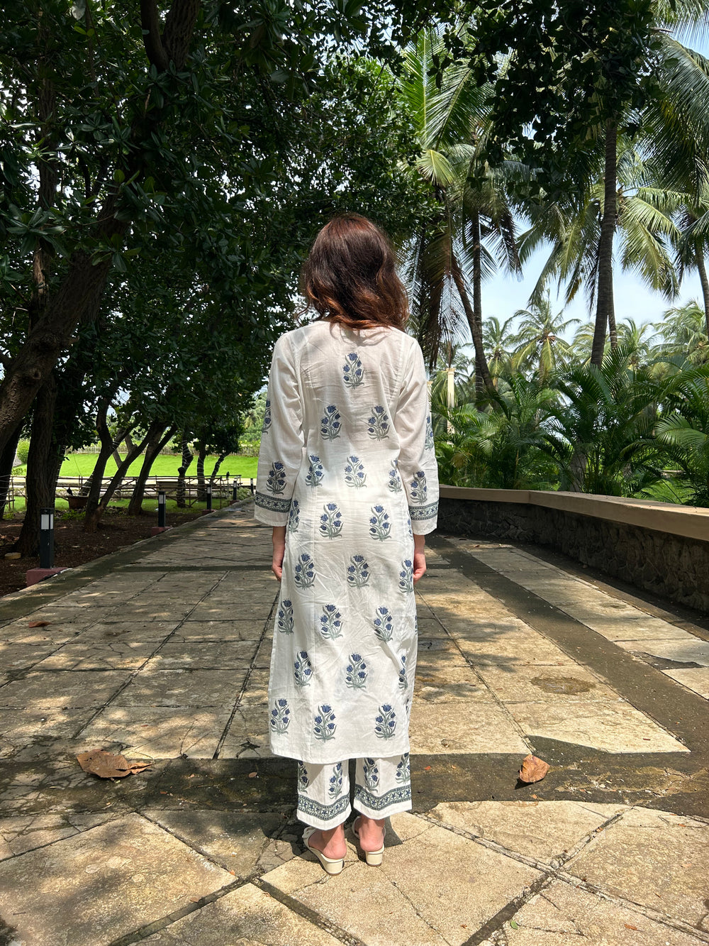 Blue Mul-Cotton Kurta Set with Handblock Print & Dupatta | Nirvana Collection
