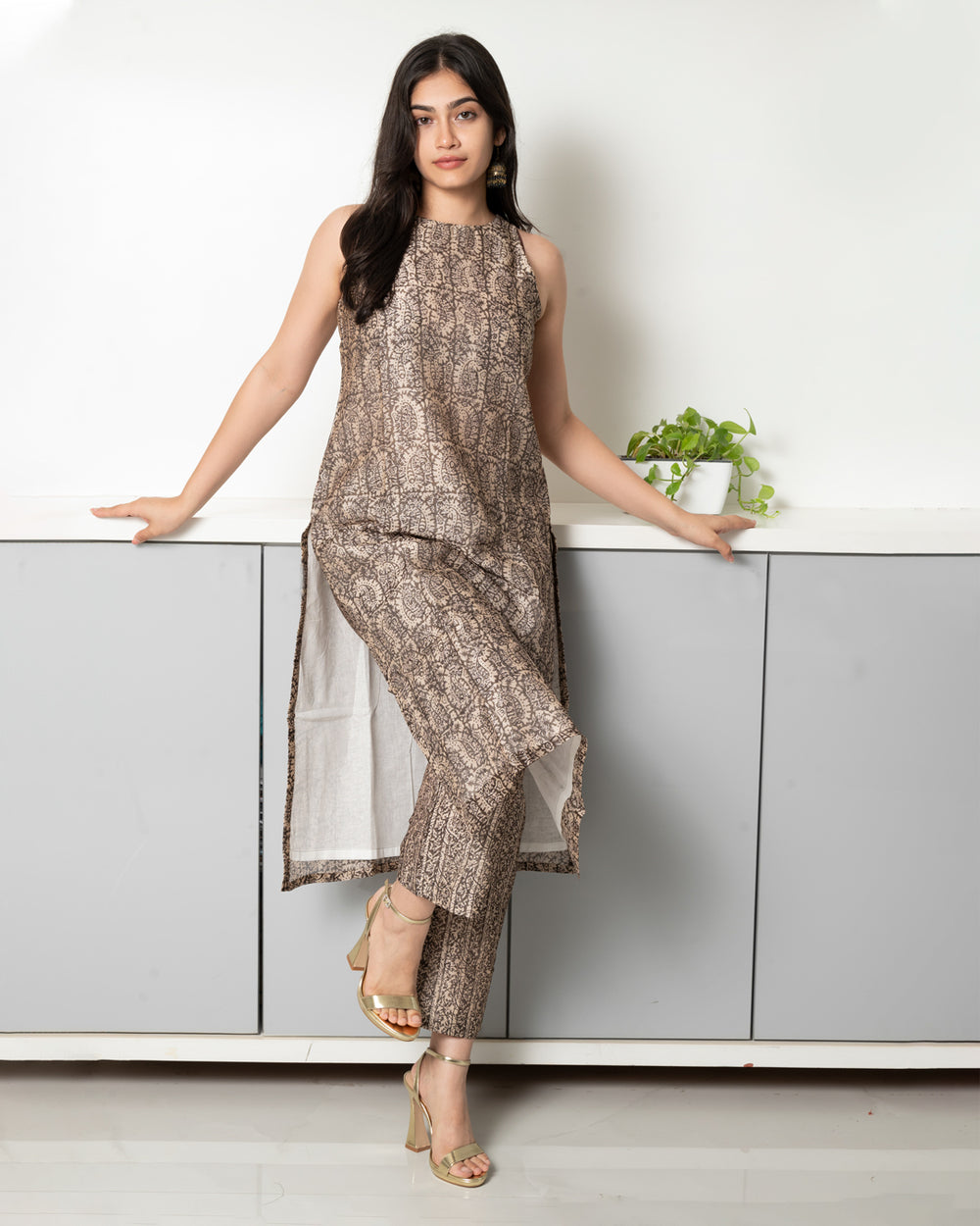 Okar Print-Kurtha with Side Pocket maheshwari silk, plant base dye by NEELMII