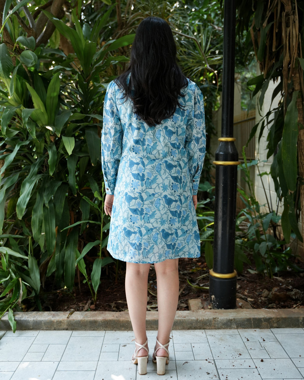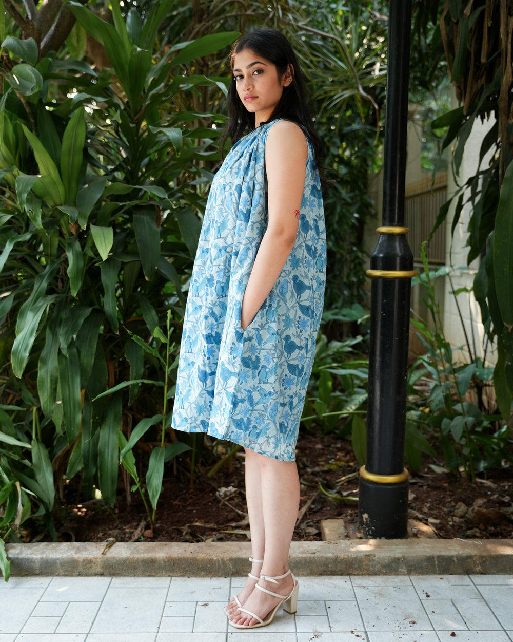 Introducing the Bird Print Dress in Soft Cotton, a perfect addition to your wardrobe. Crafted from soft cotton, this dress features a unique bird print and is available with both sleeve and sleeveless options. Plus, a side pocket adds a functional touch.