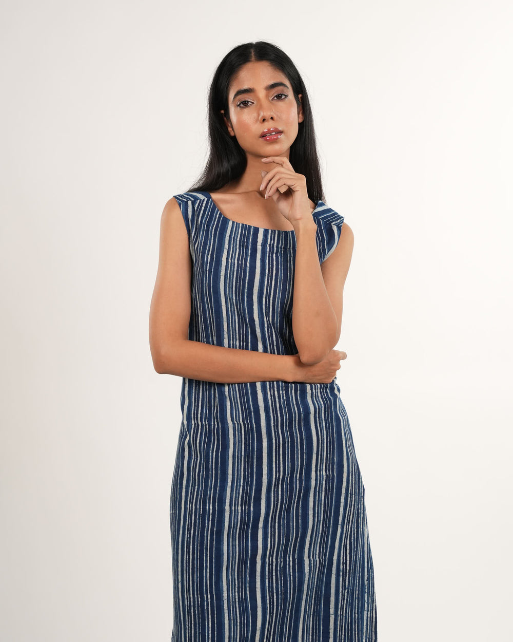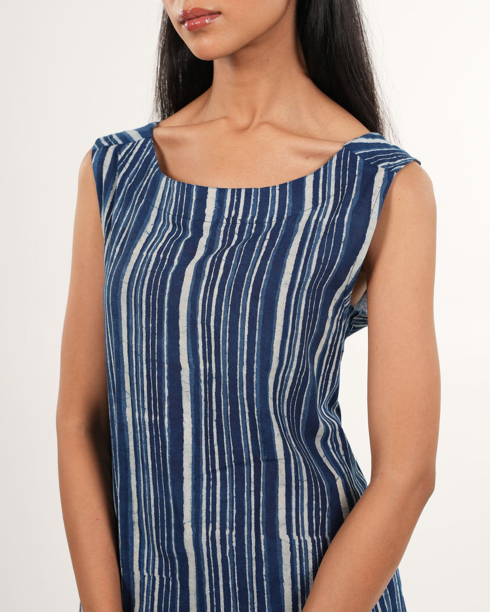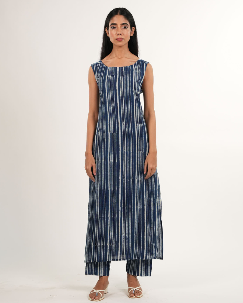Indigo Striped Sleeveless Kurta Set | Neelmii Handblock Collection