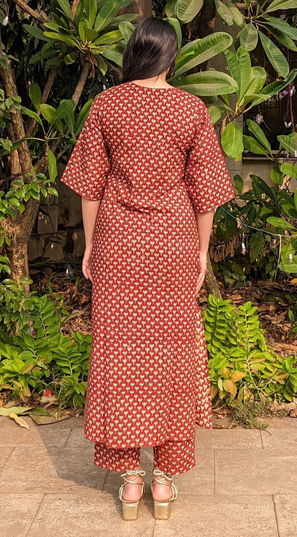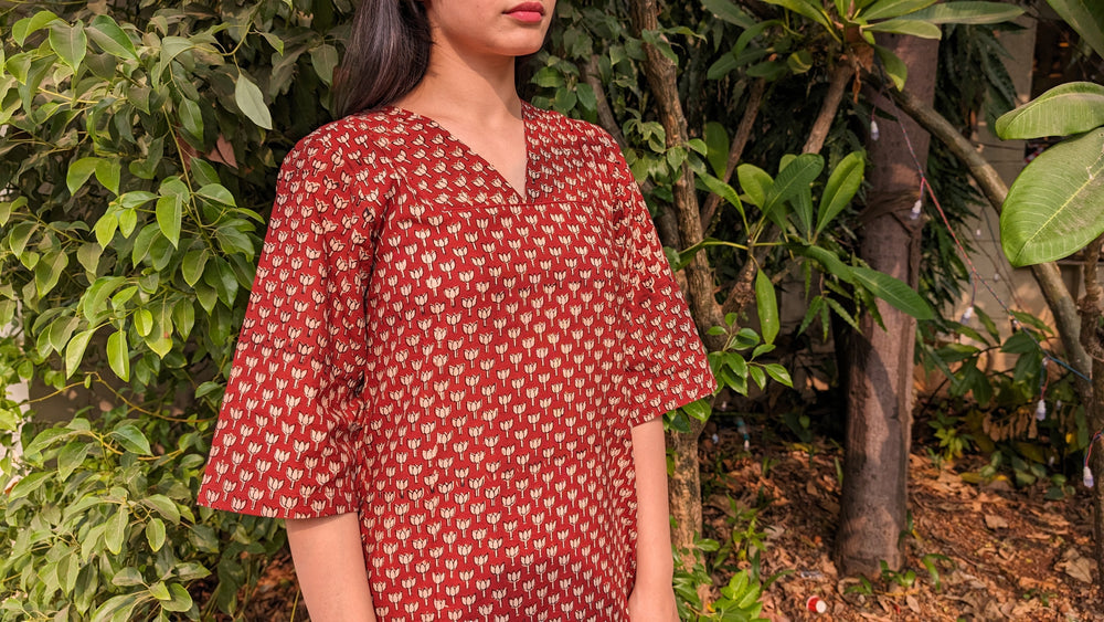 Lotus Print Cotton Kurti - Organic Plant-Based Color Pattern,katyani collection