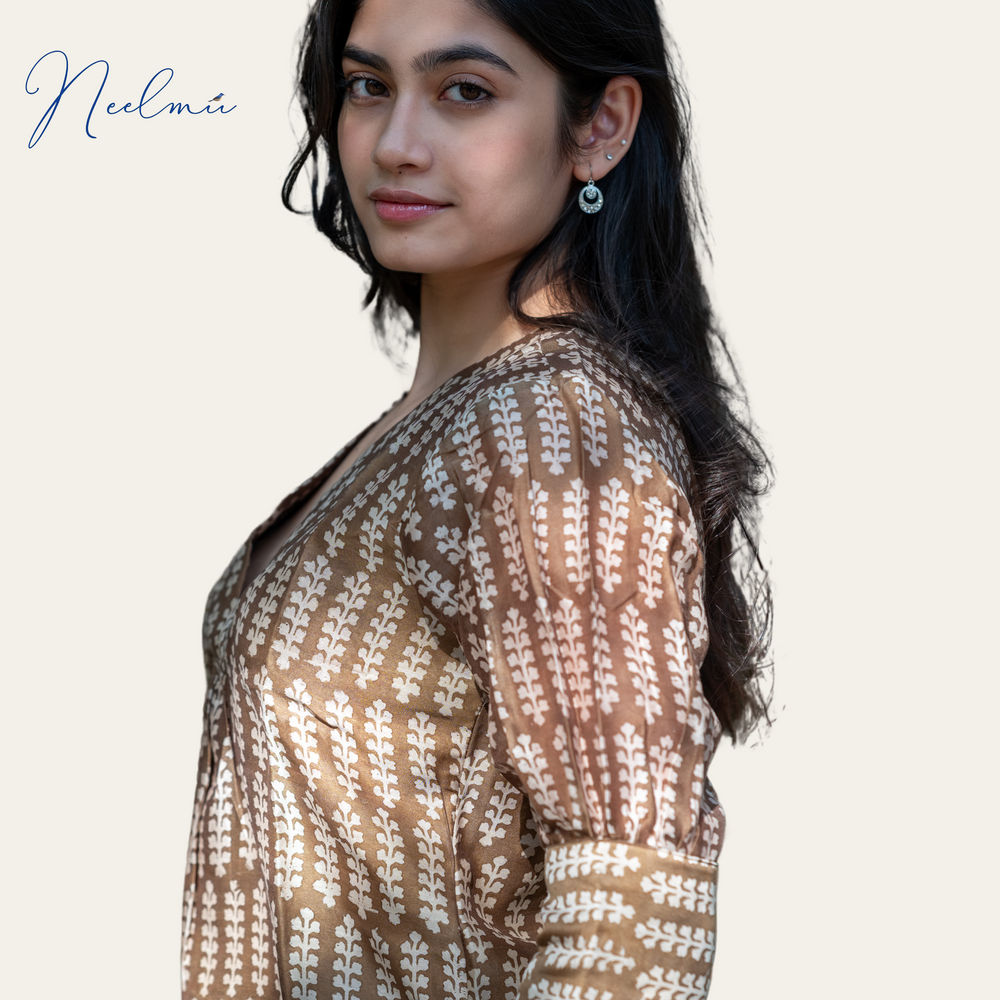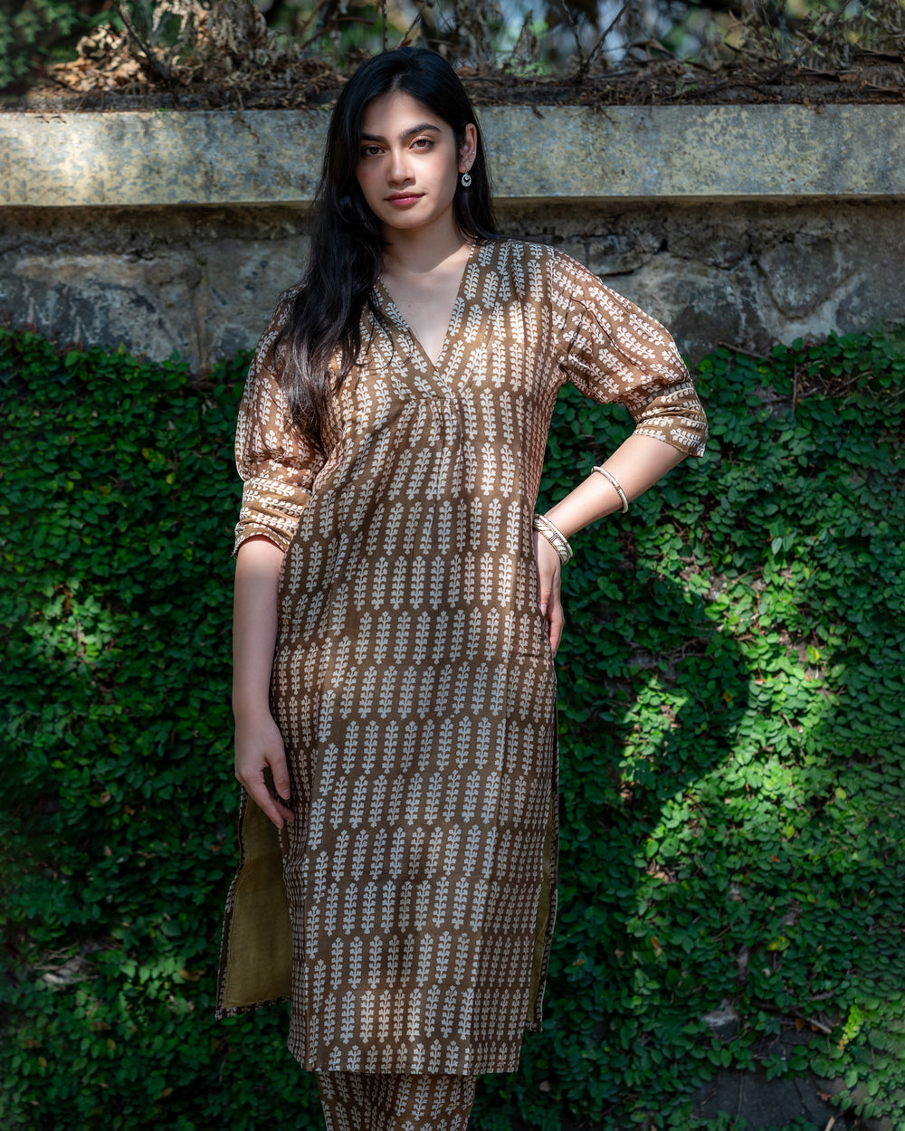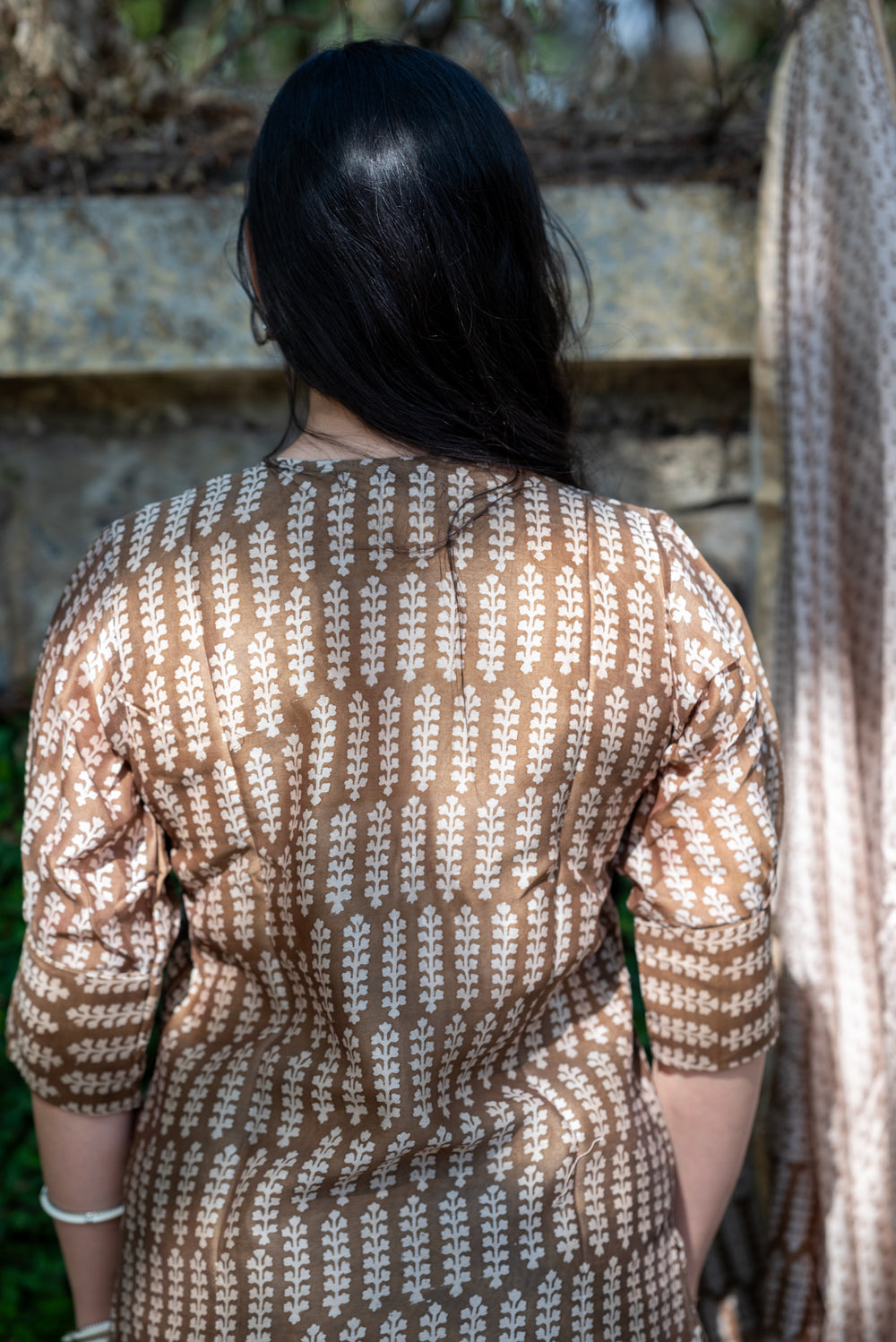 Maheshwari Silk Kurta Dupatta Set,Bagh print, plant base dye
