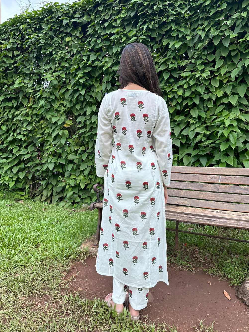 Red Mul-Cotton Kurta Set with Handblock Print & Dupatta | Nirvana Collection